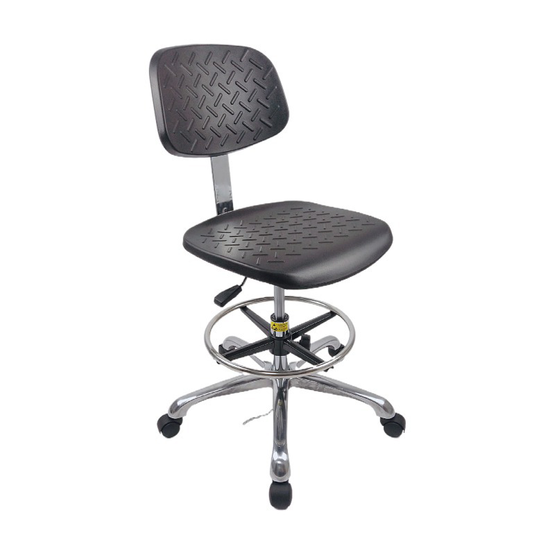 Anti-static chairs are essential equipment in static-sensitive areas and are widely used in industries such as electronics manufacturing, semiconductors, pharmaceuticals, and precision instruments. Our anti-static chairs are made of high-quality PP injection molding materials, combined with anti-static PU/PVC leather and PU foam, ensuring high strength, high hardness, and superior wear resistance and corrosion resistance. The surface resistance value of the material on the surface of the chair is between 10^6 and 10^11 ohms, which can effectively prevent static electricity accumulation and release.